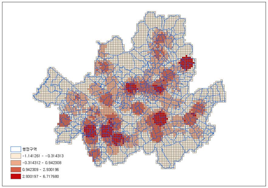 The Getis-Ord Gi* statistic was used to classify regions. The results were visualized using the COUNT_INCIDENTS_WITHIN_FISHNET_POLYGONS function of ArcMap 10.3 (Fig. 1).